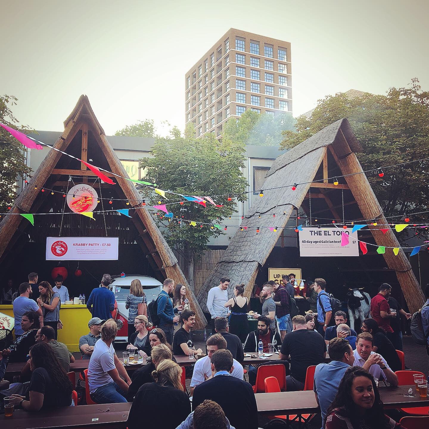Step up Street Feast, the multi-faceted union of street food stalls, who have set up markets in Lewisham, Shoreditch, Canary Wharf and Canada Water. Everything they touch turns to gold. Or grease. Or some combination thereof. The European and I especially like the Canary Wharf market, ‘Giant Robot’, which is actually more of a bar, on the top level of the swanky new Crossrail Place. Here, you can gobble down pillowy steamed buns courtesy of Yum Bum, or a Black Bear Burger, all washed down with countless beers (including new our favourite, Beavertown), while waiting for the Crossrail to be finished (insert joke here). We did have a Street Feast location literally across the road from where we live in, the old covered public market (one stall there was Salt Shed, now an in-vogue bar-be-que and burger joint at Boxpark in Shoreditch). Last time we were there, a heavily refreshed gentleman fell off the balcony onto a table of eaters below, scattering their comfort food and beers asunder. ‘Public’, in Woolwich, as the marketers have called it, is now closed until 2020. I’m not sure if the closure and the tumbling drunk are related.