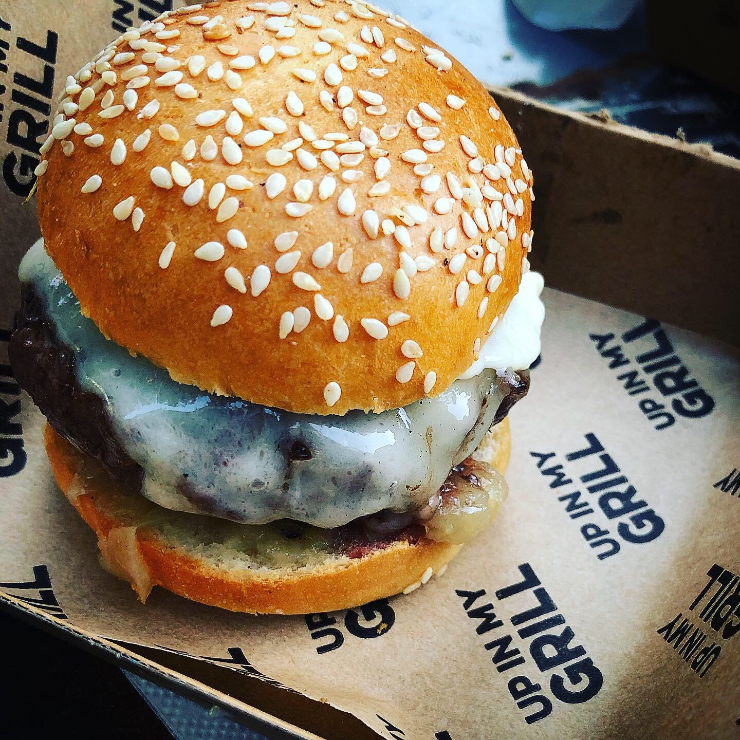 We tried three burgers in the end. How sad. We started off at Bao, who were offering up their ‘Chicken Tsinga Burger’; fried chicken, onion and Sichuan mayonnaise in a sesame bao bun. Pretty damn amazing if you ask me. Rich, tangy and the bun itself was actually kind of half bao, half bread roll. We moved on to another one we were aching to try; Up in My Grill’s ‘El Toro’. This was a simpler affair (standard cheeseburger) but made with a forty-day aged Galician beef, said to be among the best in the world. Studded with green peppers, the patty made its mark – it was indeed fine as can be; tender but firm and deep and rich to taste.