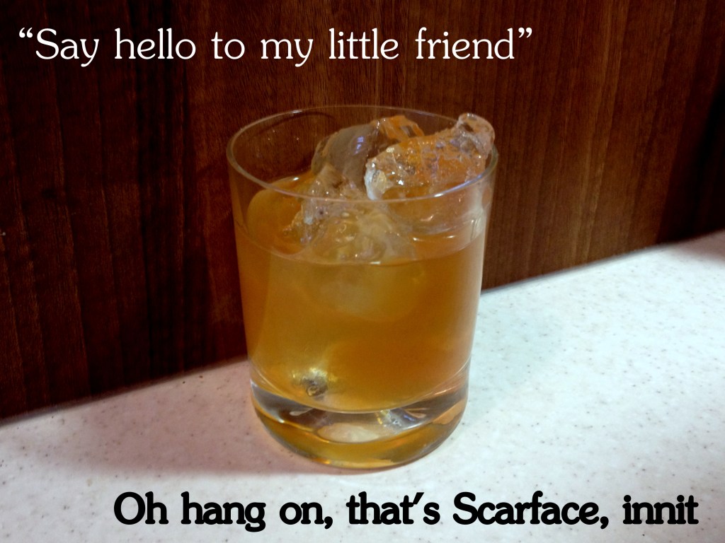 As well as being a slothfully long-winded gangster epic (I am firmly with Peter Griffin when he states that the film ‘insists on itself’), The Godfather is a damn good after dinner drink consisting of Scotch and amaretto. My housemate introduced me to it a couple of years ago and it was one of those moments which was life-changing, like when you hear a song that you just know will always be up there with the best you will ever hear. The measurements of the Godfather vary from equal parts amaretto to Scotch (housemate’s formula), or 2:1 in favour of Scotch (as per Difford’s Guide to Cocktails).