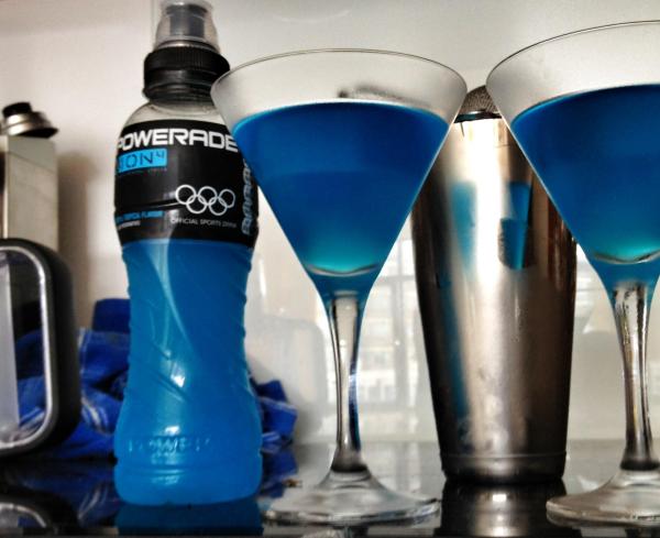 So in celebration of the dearly departed games and a resurging aura of fitness, I will take a bottle of Powerade and turn it into a… martini! How can this fail?