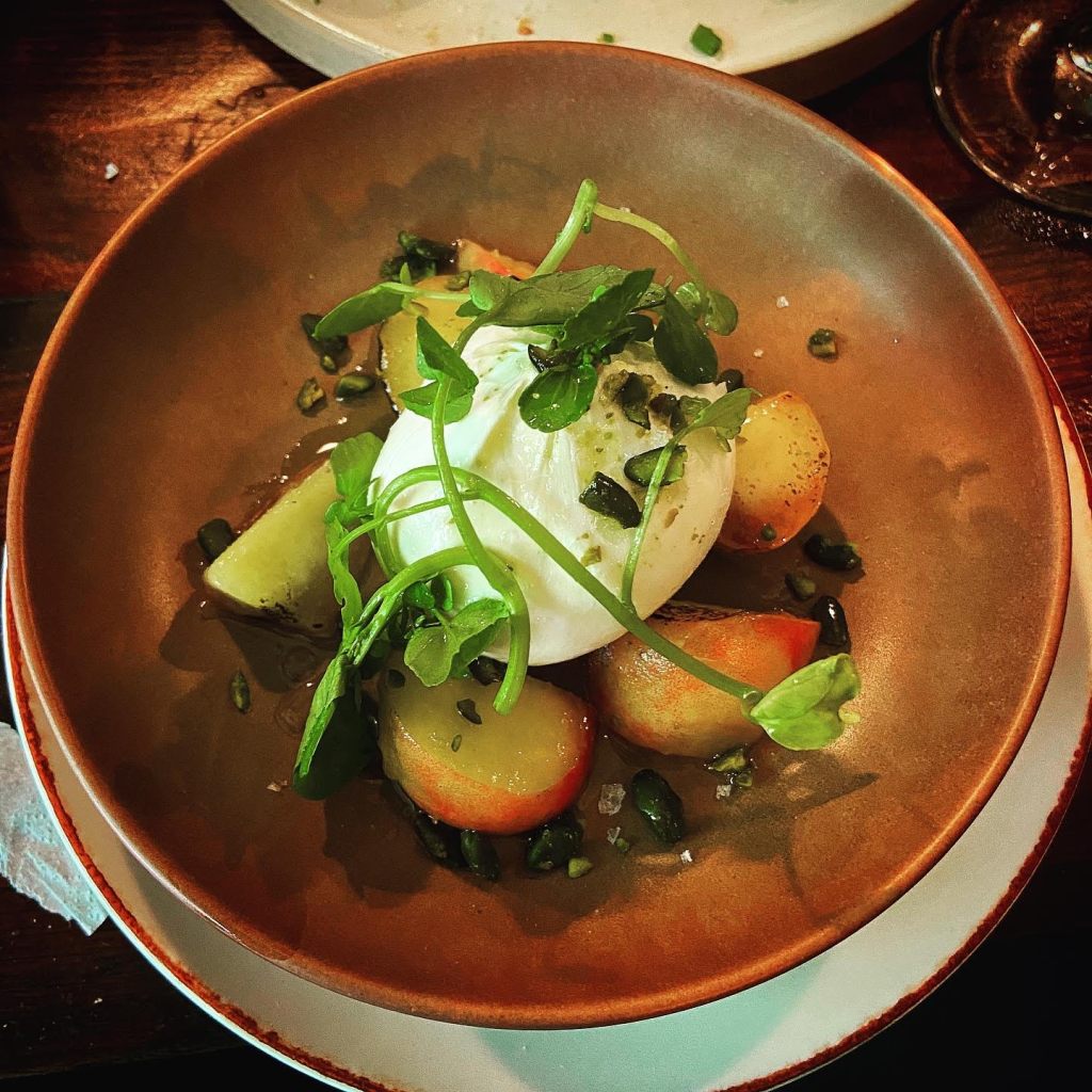 Small menus are fine if the quality is there. And the quality was there, in spades. Four cheese arancini were orgasmic, little umami palate-zingers to kick off the meal. Homemade focaccia was bouncy and salty (and a surprise, as well didn’t order it). The European ‘started’ with a Devon Crab roll with home-made potato chips. The crab almost made her cry with happiness. It was fresh and seasoned perfectly, generously stuffed into a fluffy brioche roll. It could have been enough by itself, to be enjoyed lingeringly with a glass of fantastic white. My starter of burrata with fig was a perfect example as to how good this creamy cheese can be.