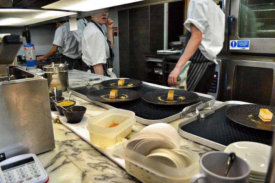 The cheese trolley, though less disparate than many I have seen, was dished out generously and could have finished us off. It would have been that or the accompanying slug of Port. However, there was a perfectly-balanced dessert of brown sugar tart and stem ginger ice cream to ‘struggle’ through and thanks to a generous chef, as a passion-fruit soufflé to share as well. Laurens, our head waiter, must have felt our pain as we were whisked onto our feet for a brisk stroll down into the kitchen to meet Sous Chef Greg Austin.