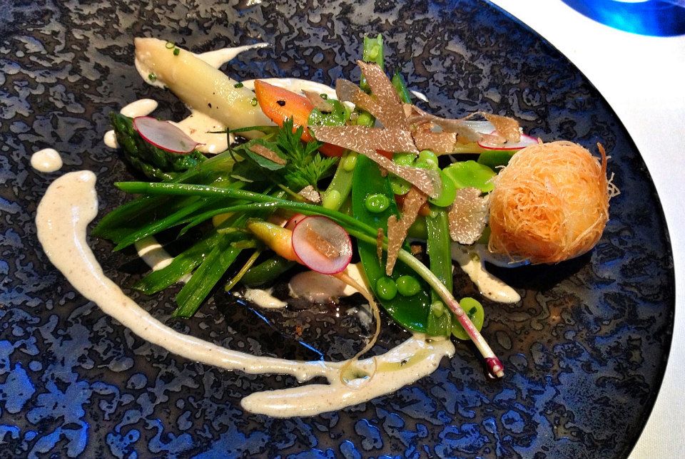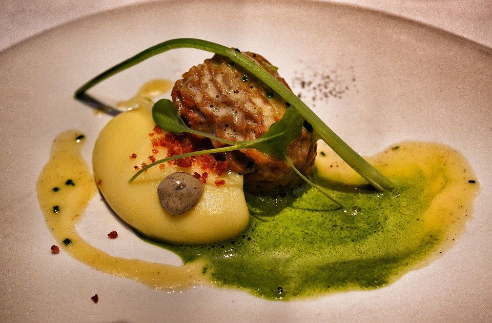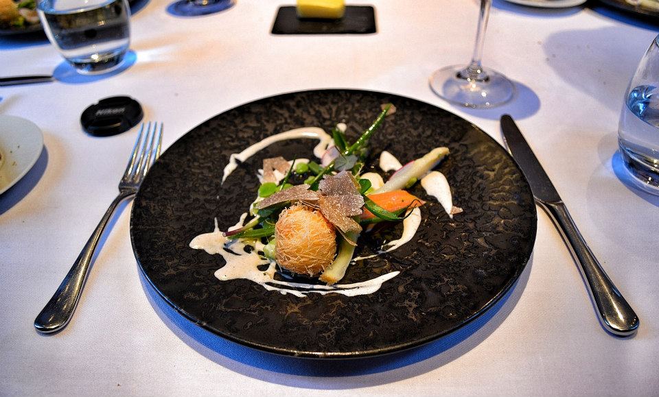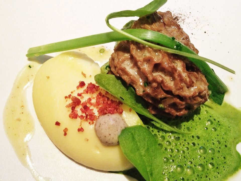 Some dishes perfectly reaffirm Graham’s intentions – the ceviche of scallop is only slightly but suitably fanciful, crowned with crystallised English Wasabi. A bite-sized stuffed morel with mash leads into the main course and is tasty-enough, but almost a non-event, whereas a salad of spring greens and shoots is all but inconspicuous, but elevated at the last minute with a breaded, warm quails egg. My mate hit the nail on the head;