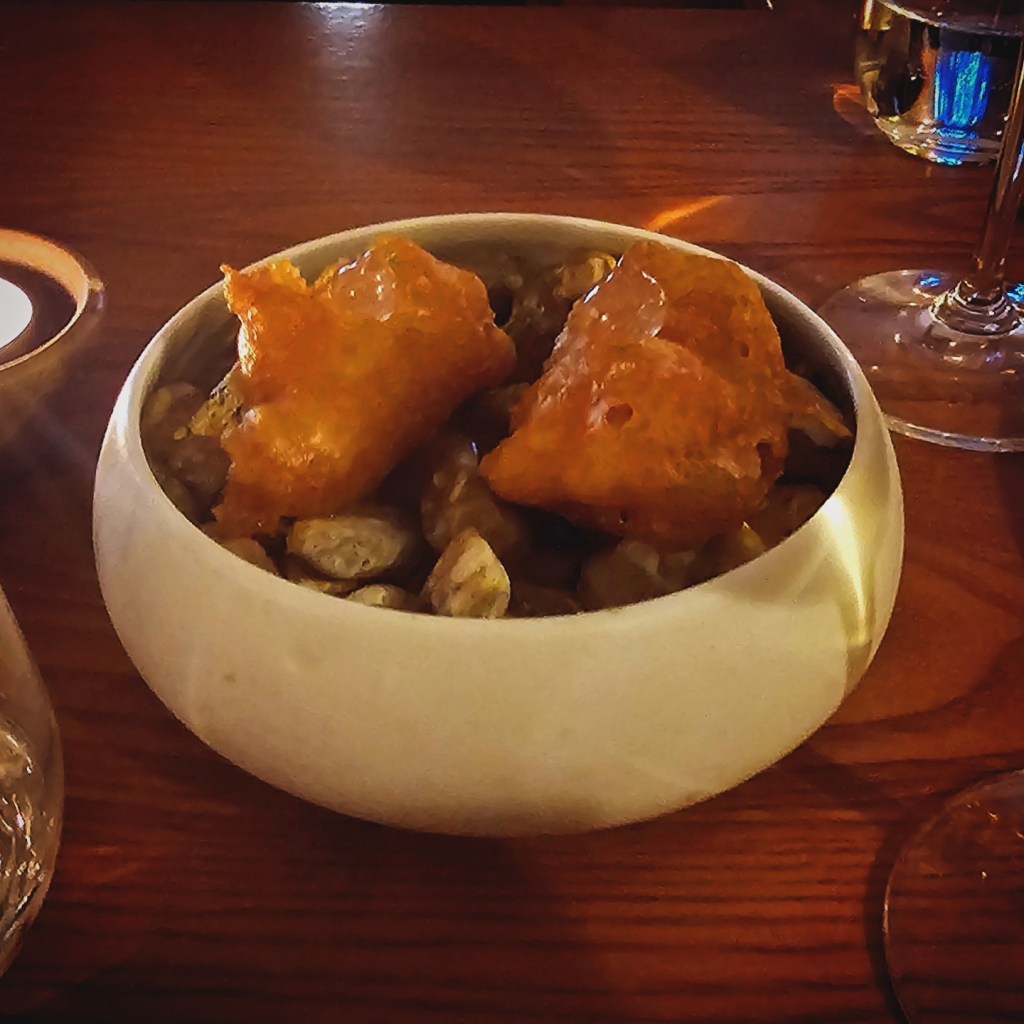 The Fordwich Arms is one of two pubs in Fordwich, the smallest town in the U.K. We took a taxi ride there from the beautiful city of Canterbury, just ten minutes down the road. You enter the restaurant and find yourself standing in the dining room in a pretty, but not stunning pub. There’s no host desk and the bartender leans over the bar to greet you. It’s Michelin quiet, and the staff are impeccably turned out. Some serving is conducted by chefs.