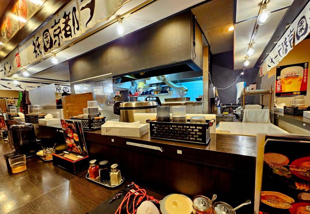 Ironically, for me at least, there wasn’t much fried rice on the trip. I genuinely thought that I was going to chicken out of so much food on this trip and find solace in a bowl of inoffensive, tasty grains of goodness. As it turned out, we ate it once, in a ramen restaurant in Kyoto called Gion, on Hanamikoji-dori. It was a wonderful find, the day after our sad sushi across town. In fact, now I think about it, it might have been the same evening, just a little later on, as I remember us still being hungry after our first fateful dinner.