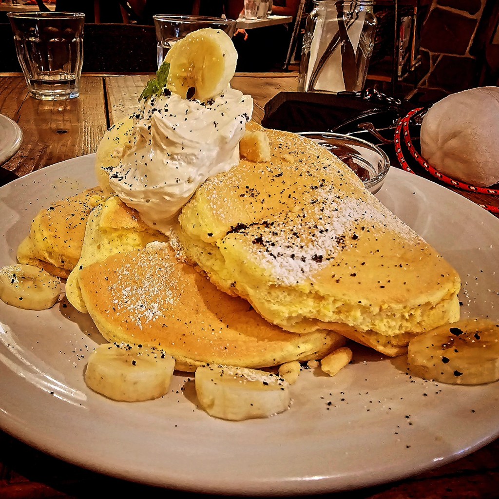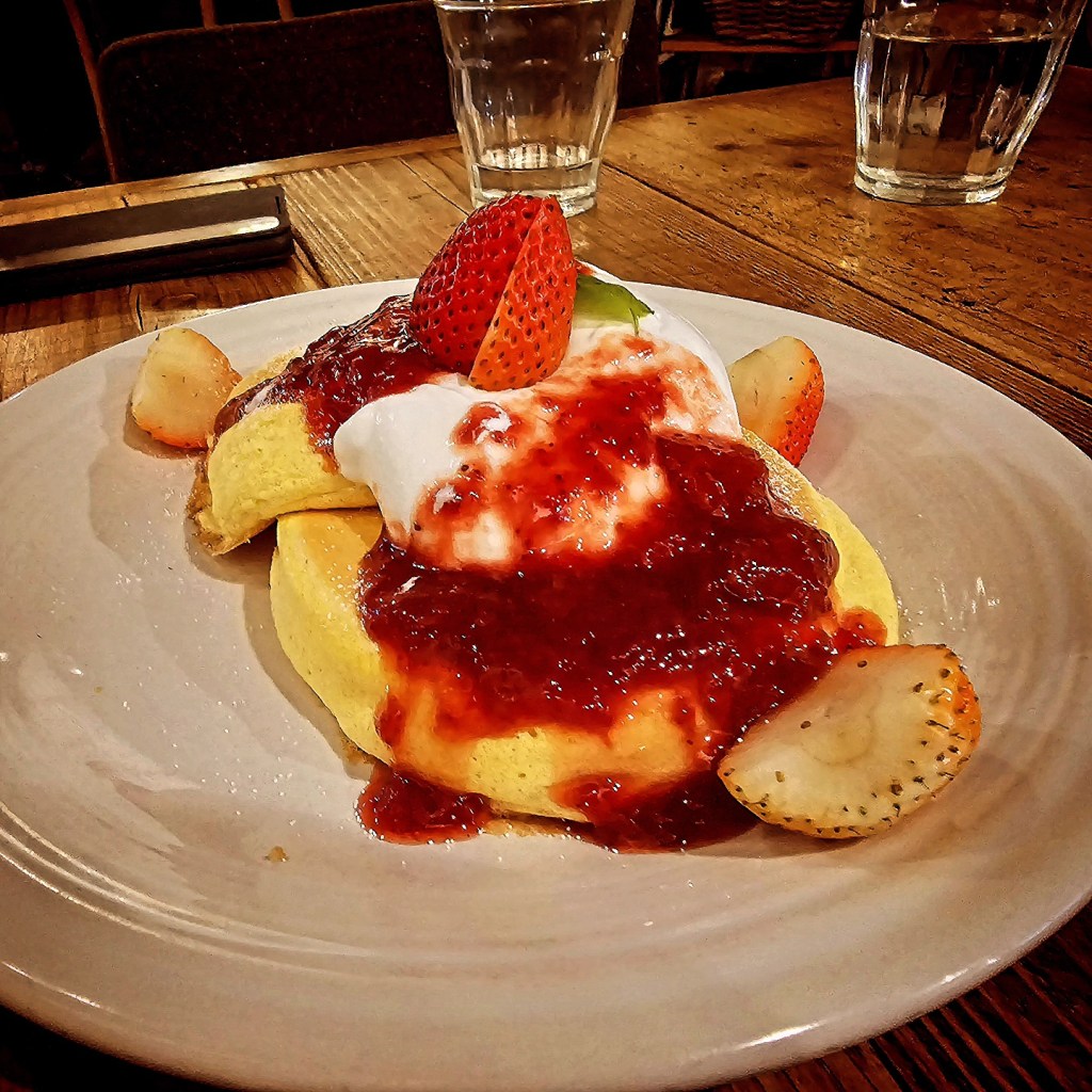 We didn’t exactly have a balanced diet on our first day in Osaka. The city, popularly recognised as one of the ‘foodie’ centres of Japan, is chilled and full of edible opportunity. We arrived early and were able to check in early to our hotel, The Bridge (so called for a bridge that spanned a parking space outside its front door). Ravenous, after a substandard breakfast in our Kyoto hotel earlier, we found a café next door that specialised in fluffy pancakes, à la Instagram. The café, Elk, dressed up its coffees with 3D latte art, reeked of hipster, and was full of foreigners (like us, yes). Chronically short-staffed, it served up some kick-ass pancakes forty-five minutes after ordering that were an inch tall at least. Mine were heaped with chocolate and banana, and The European’s were slathered in strawberries and cream. We ate them greedily, honouring their awesomeness in silence.