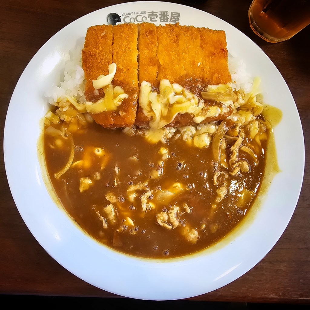 We used our trusty Google Lens (another useful discovery made at the end of the vacation) to translate the menu and ordered a couple of chicken katsu curries, hers with spice and pickle and mine with tons of cheese all over it. You can order a McDonald’s-style meal deal where you get a beer and a salad included. For about two thousand yen each, you get a man decent meal. The curry is beautiful. Maybe it’s the placebo effect of eating it in Japan, but it tasted better than any of the katsu curries I have eaten in the U.K. For a final meal in the country, not counting a disappointing airport rice dish I had that same evening, it was a wonderful stodgy and tasty mess.