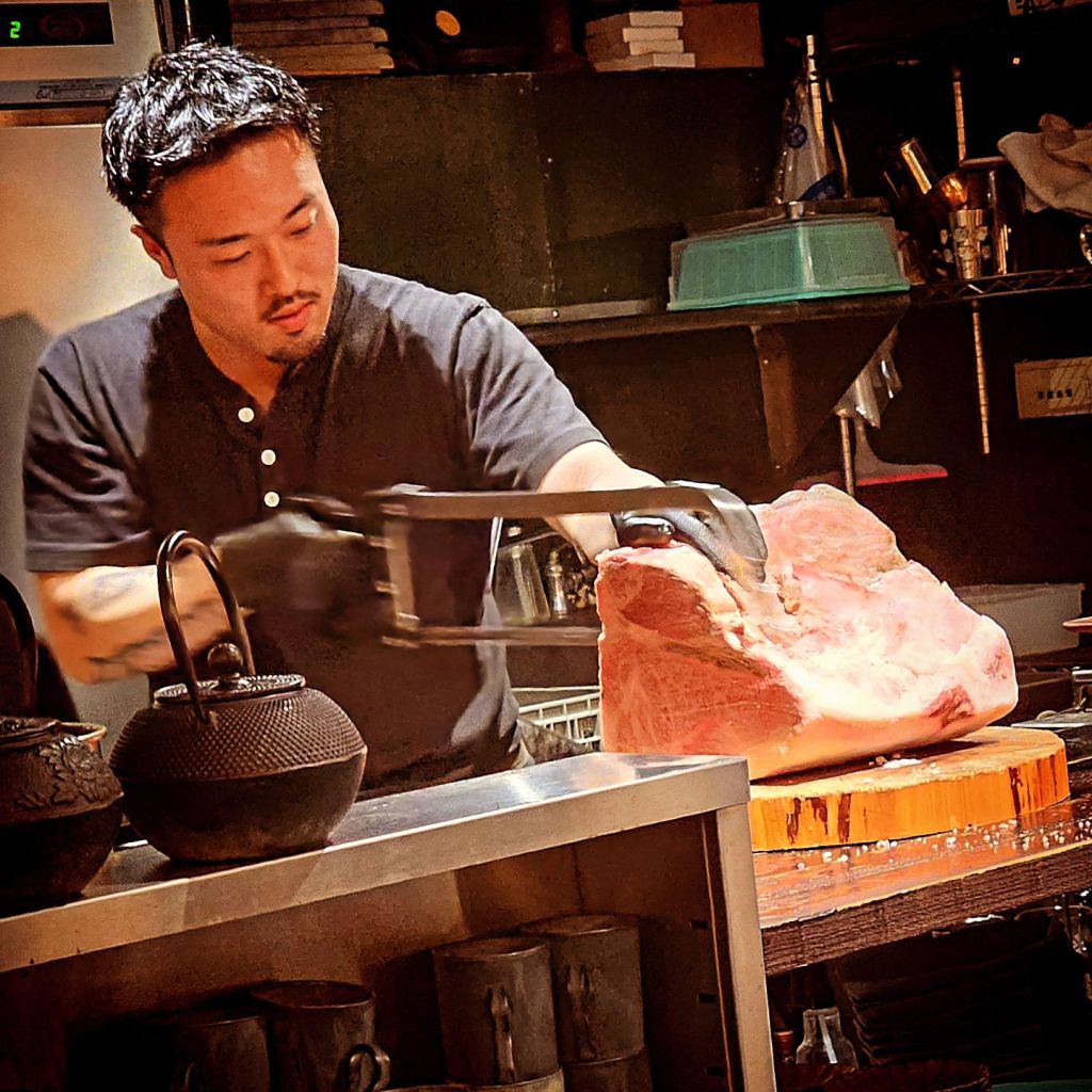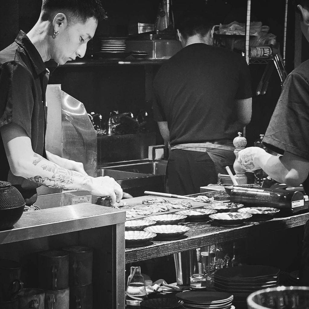 At just after five in the evening, we arrived at T nakameguro in Meguro City, a quiet and affluent inner suburb of Tokyo, around two kilometres south of Shibuya. We were two people in the fully booked, fourteen-strong sitting for early dinner (there’s a half-past-eight sitting three hours later). We are seated in the centre of a fire-coloured u-shaped counter overlooking the open kitchen, where Head Chef Hattori Yukai presented the marbled boulder of raw Omi beef that will soon be prepared into an eleven course omakase menu that has resulted in this restaurant being ranked as one of the five best steakhouses in Japan.