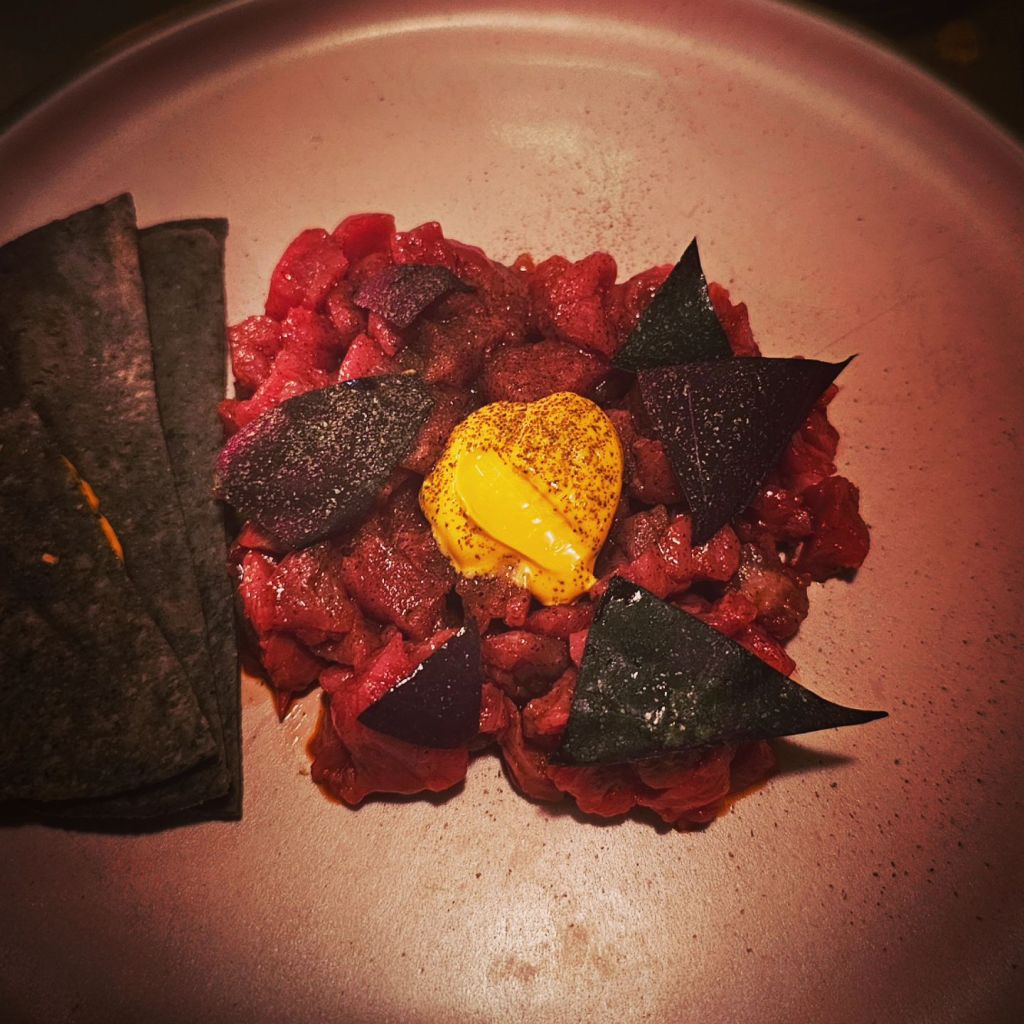 Fonda is Lastra’s second restaurant in London. It opened on the culinary Mecca of Heddon Street in 2024 and has been on my hit list from that very moment. In Mexica, a fonda is a cheap, often family run restaurant, and the name of the game here in Mayfair is, well not ‘cheap’, but let’s say, ‘cheaper’ Mexican fare compared to KOL, with an emphasis on small plates, and celebrating corn, one of the few ingredients on the menu with less than local provenance. Partnering with Tamoa, a social enterprise connecting native corn farmers in Mexico with global suppliers, Fonda mills it in-house, creating their own tacos, tortillas and the like.